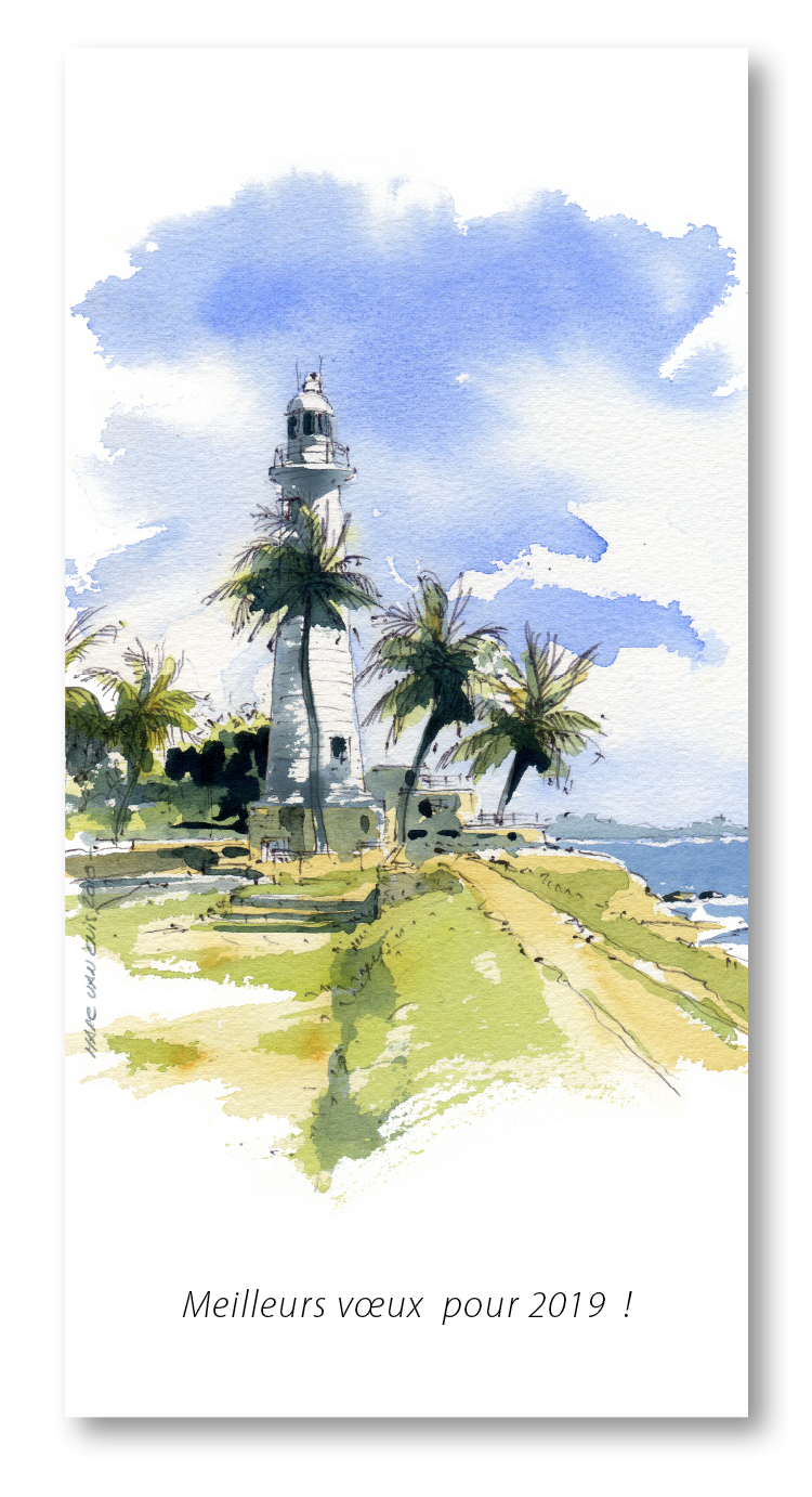 * Aquarelle : le phare de la Pointe de Galle (« Galle Lighthouse » – Sri Lanka)