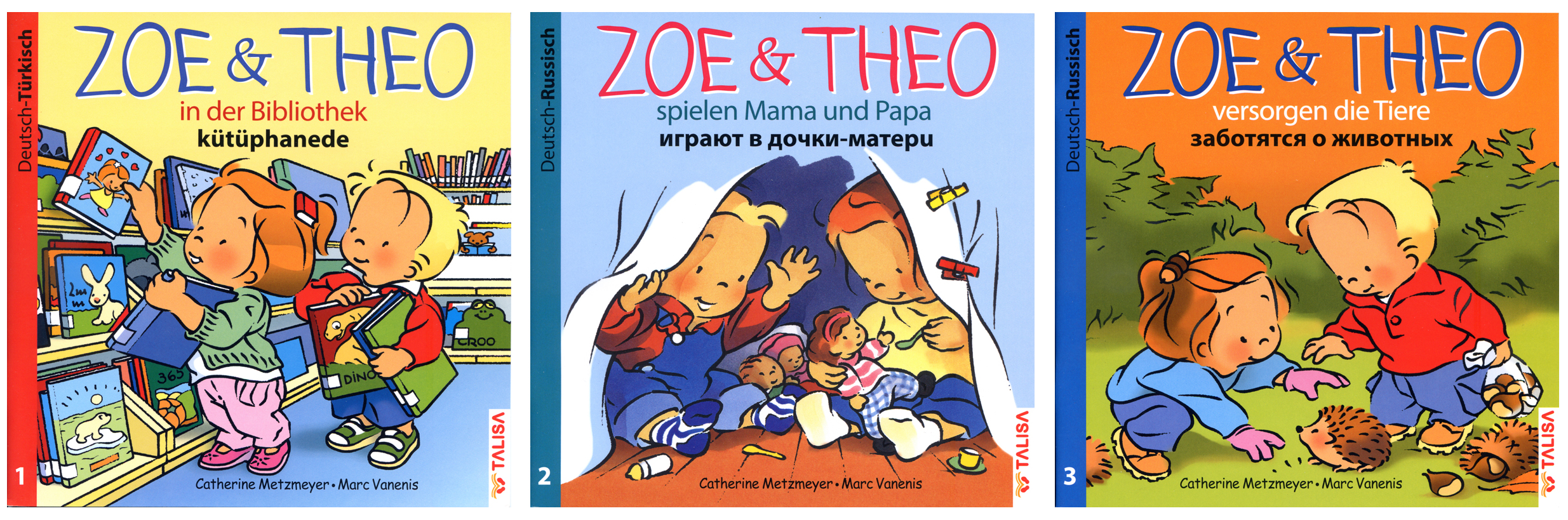 Les aventures de Zoé et Théo sont également disponibles aux éditions Talisa-verlag en 6 versions bilingues :