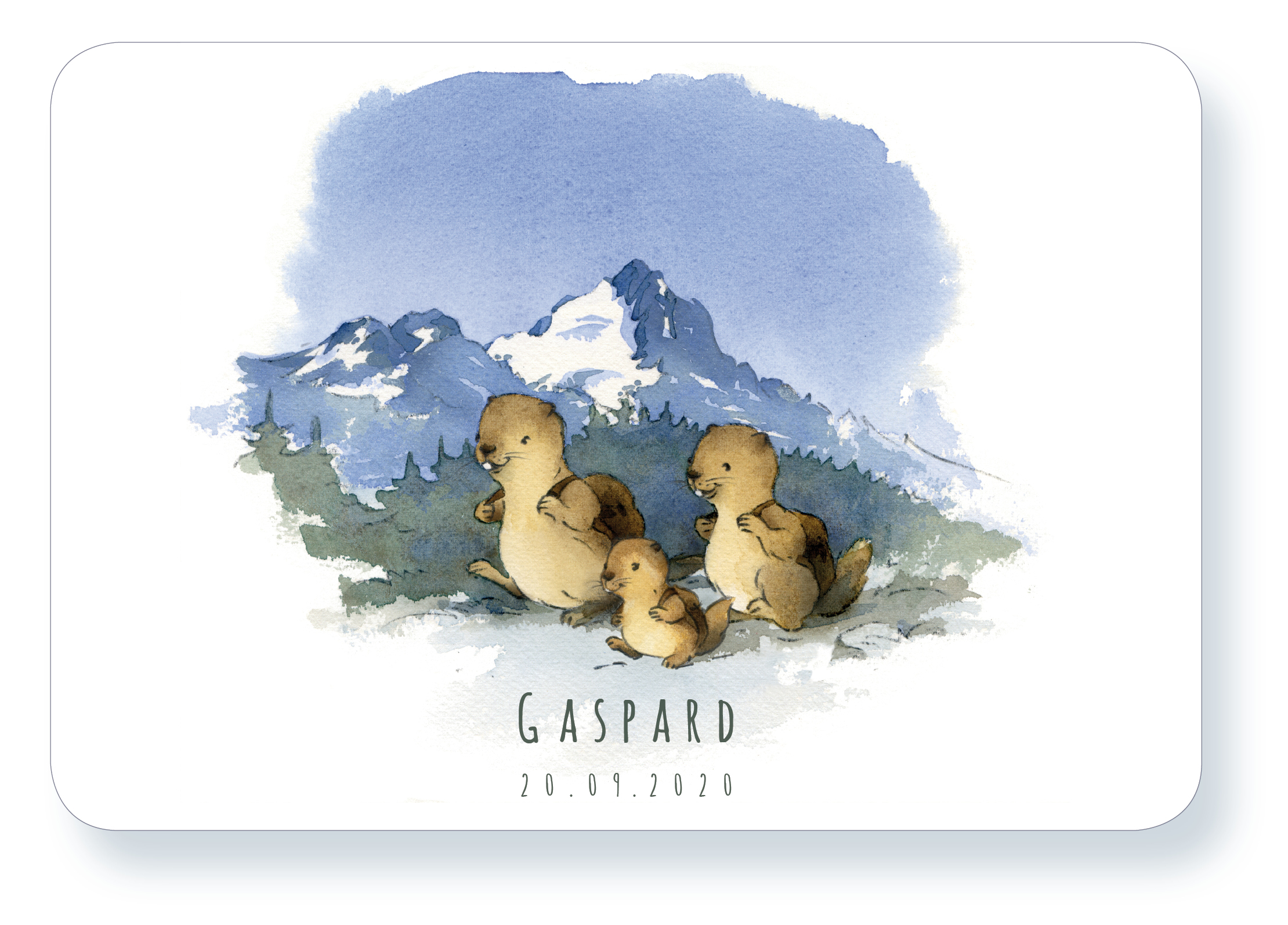 Annonce de naissance pour la venue d'un petit Gaspard dont les parents sont fous de montagnes...