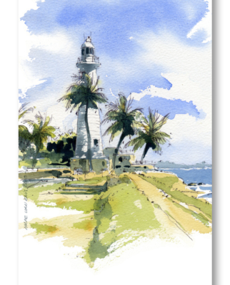Aquarelle extraite d'un carnet de voyage : le phare de Galle (Sri Lanka)